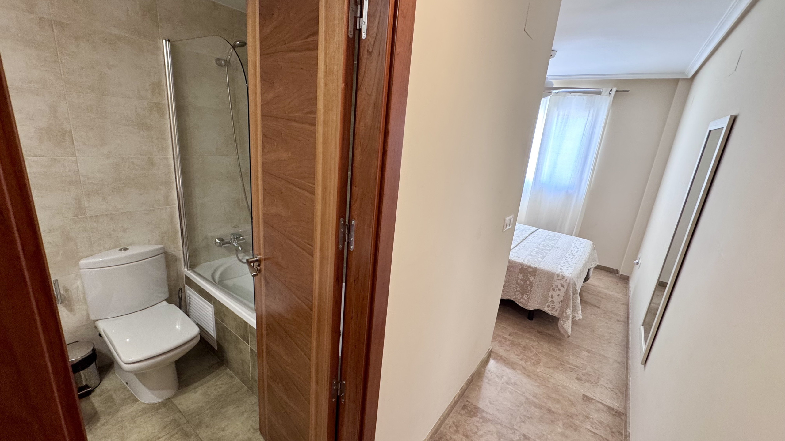 Die Wohnung verfügt über 79 Quadratmeter Innenraum und eine Terrasse von 8 Quadratmetern, die den Wohnbereich erweitert. Sie bietet zwei Schlafzimmer: eines mit Doppelbett und zwei Einzelbetten, die eine bequeme Ruhepause für bis zu 4 Personen ermöglichen. Die Aufteilung umfasst zwei vollständige Badezimmer mit Dusche, ideal für den Komfort der Gäste.