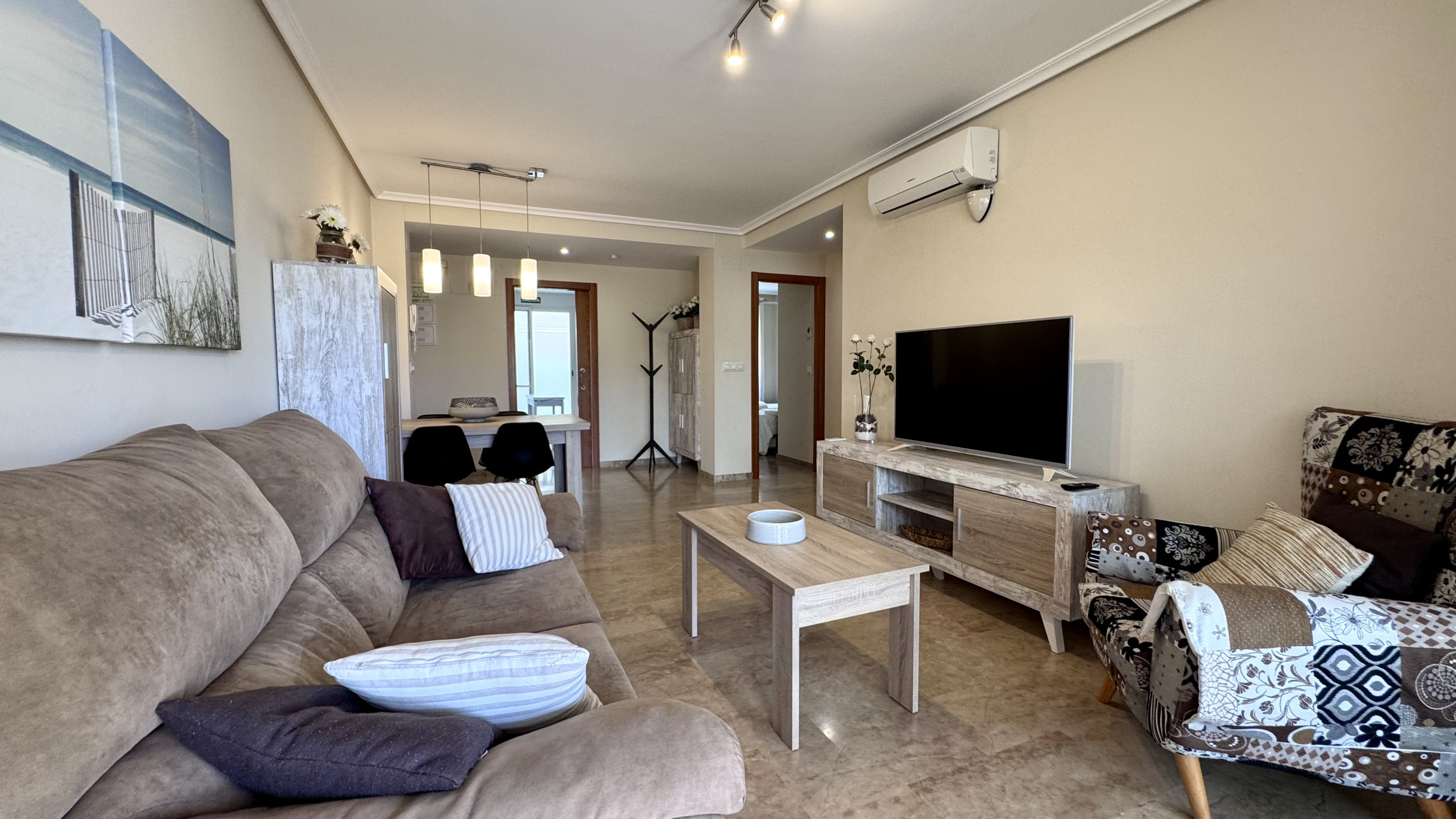 Entzückende 2-Zimmer-Wohnung in Denia, perfekt für Familien und Paare, die einen ruhigen Ausflug direkt am Meer suchen. Diese moderne und gemütliche Unterkunft bietet eine ideale Atmosphäre für einen entspannten Urlaub.